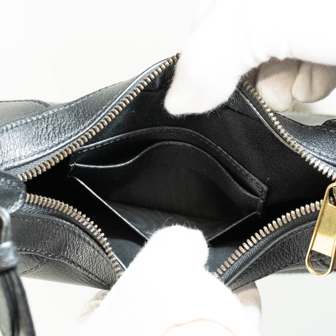 上質なブラックレザーにダブルGが映える人気のアフロディーテ スモールは、人気のブラックカラーで、カジュアルからフォーマルまで幅広くお使いいただけます。