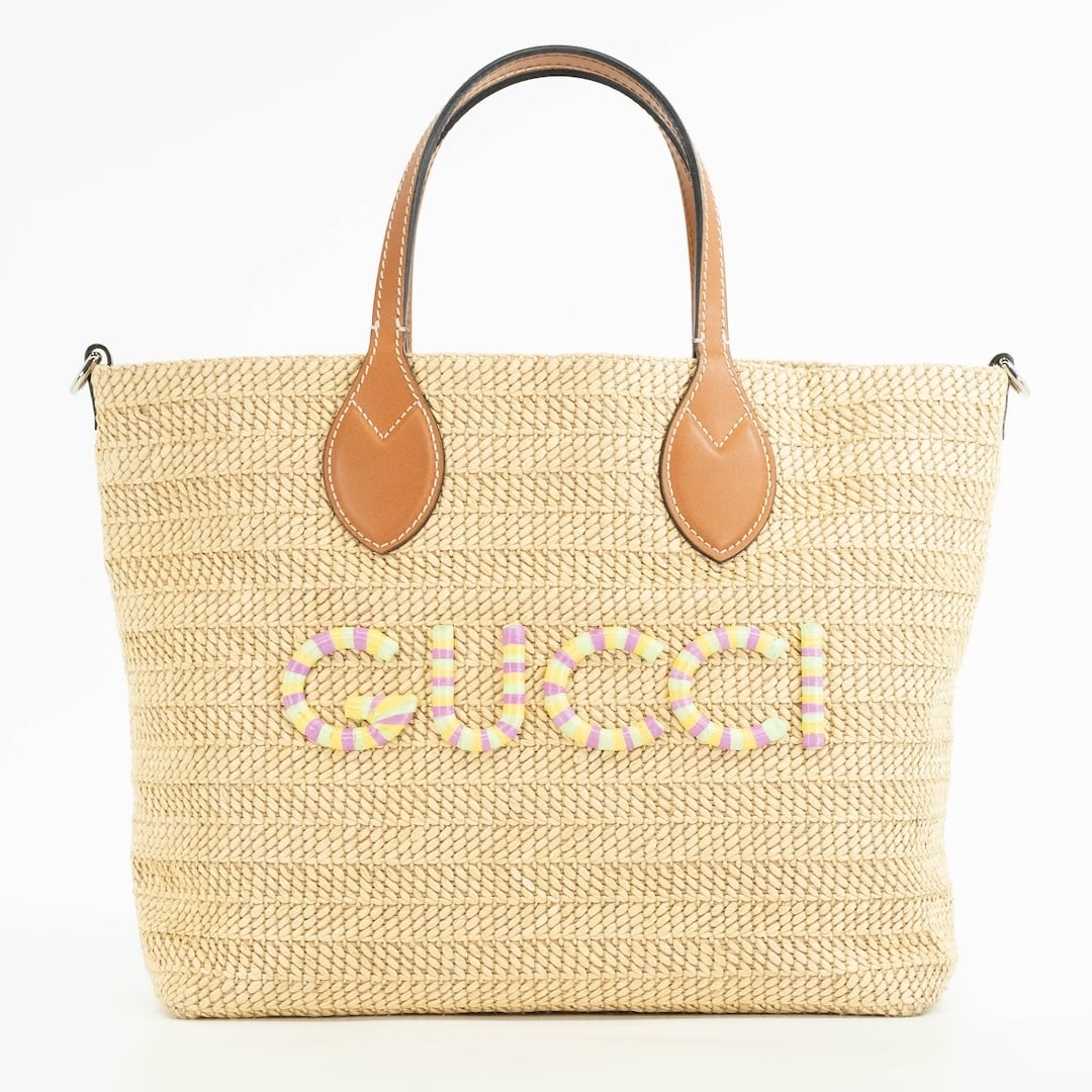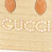 GUCCI グッチ 779671 スモール カゴバッグ ハンドバッグ トートバッグ レディース ナチュラル ブラウン ロゴ