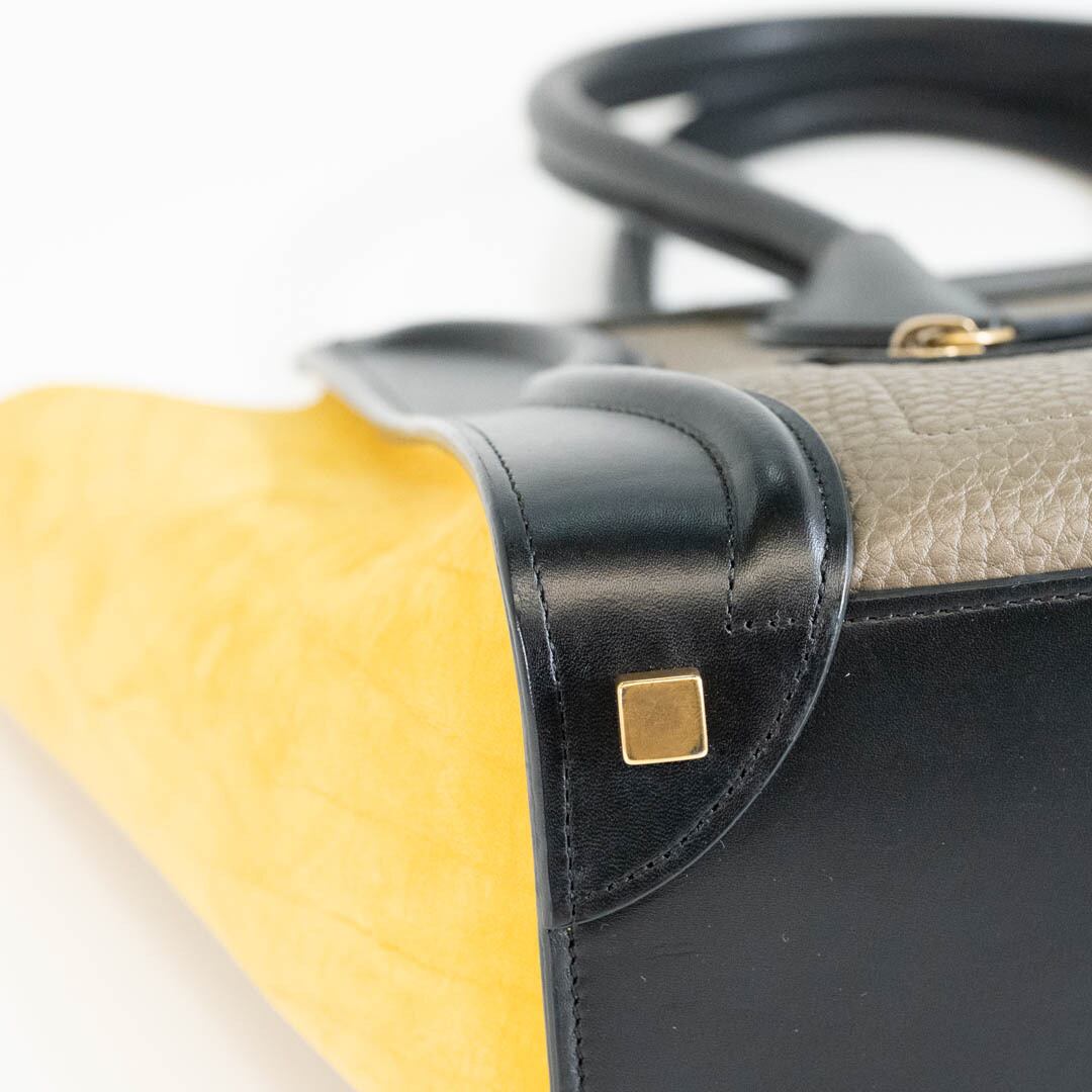 CELINE セリーヌ ラゲージ マイクロ ショッパー 167793AAC トリコロール マルチカラー レザー ハンドバッグ レザー ハンドバッグ ブラック アイボリー イエロー レディース 廃盤 人気