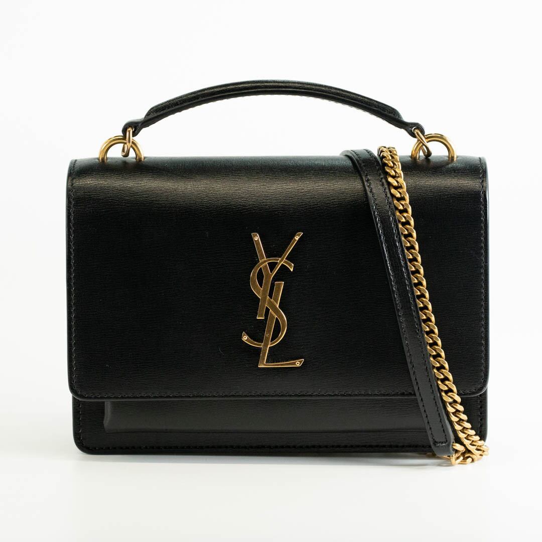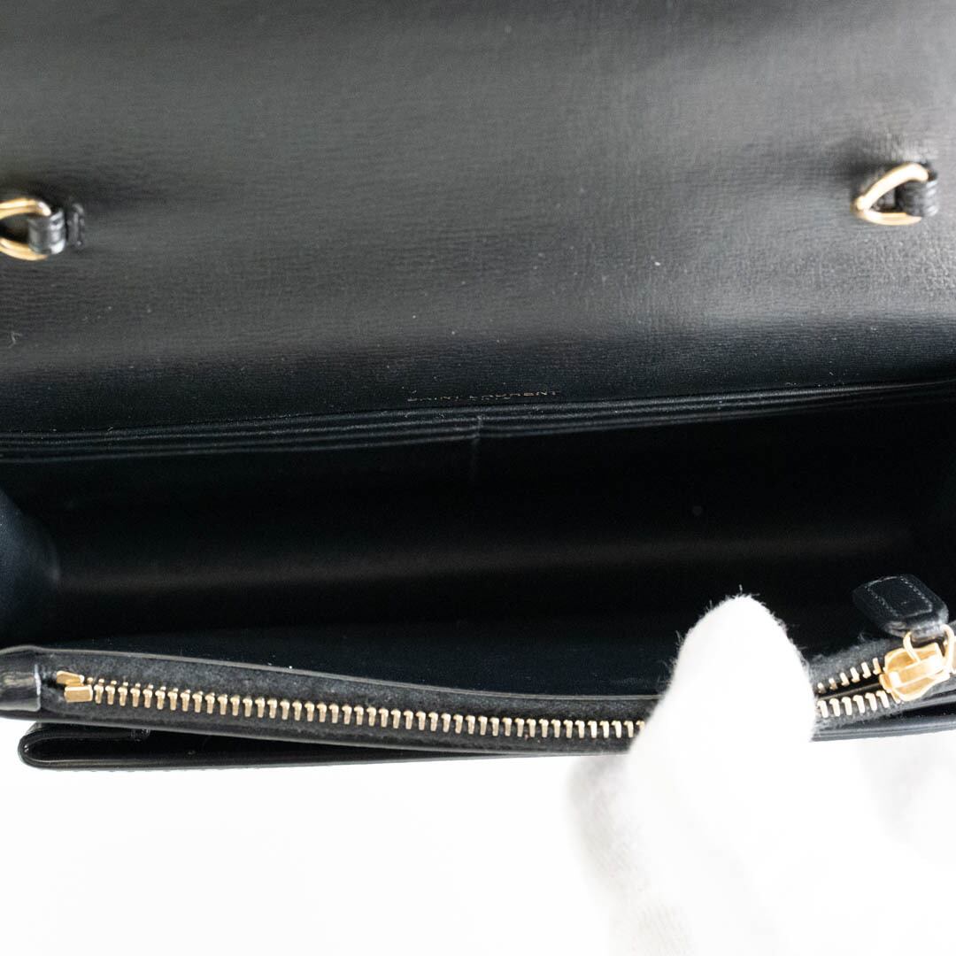 【美品】YSL SAINT LAURENT サンローラン サンセット チェーンウォレット 533026 カサンドラロゴ WOC ショルダーバッグ ブラック 2WAY レディース