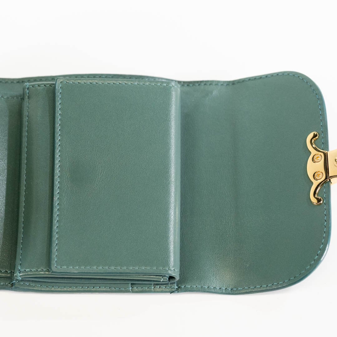CELINE セリーヌ トリオンフ スモールフラップウォレット 10D783DPV 三つ折り財布 グリーン ブルー レディース 現行モデル